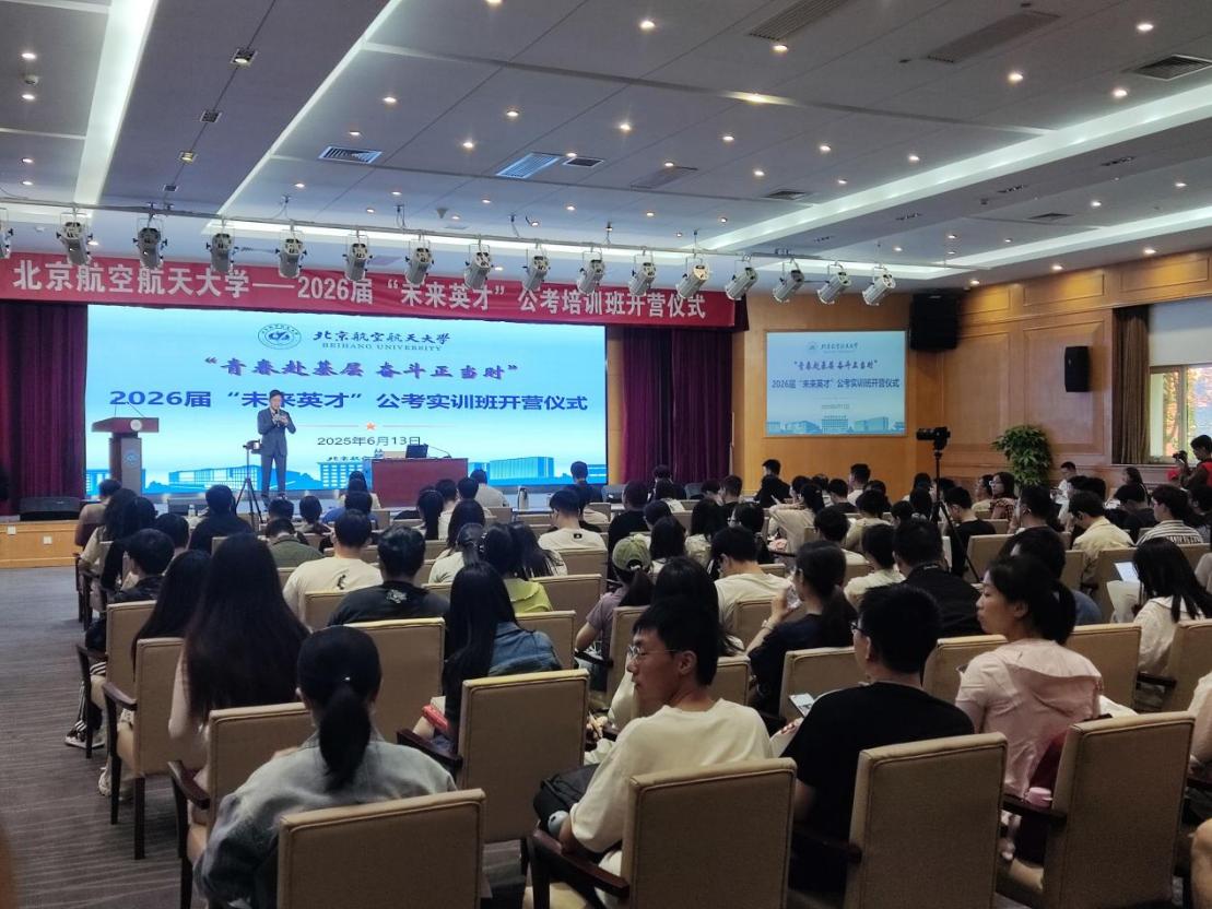 6月13日下午,2026届“未来英才”公考培训班开营仪式在热烈氛围中启幕。公考培训专家为备考学生带来专题讲座,从岗位竞争比、基层工作发展前景等方面进行深度剖析。未来英才培训班是学校推出的公考备考能力提升系列课程,课程涵盖了基础夯实、能力拔高、实战模拟、面试精训等核心环节,将理论教学与实践演练深度融合,为有意愿报考选调生公务员的毕业生提供全覆盖的笔试面试培训。6月14日起,超160学时的公考培训课程将陆续进行。