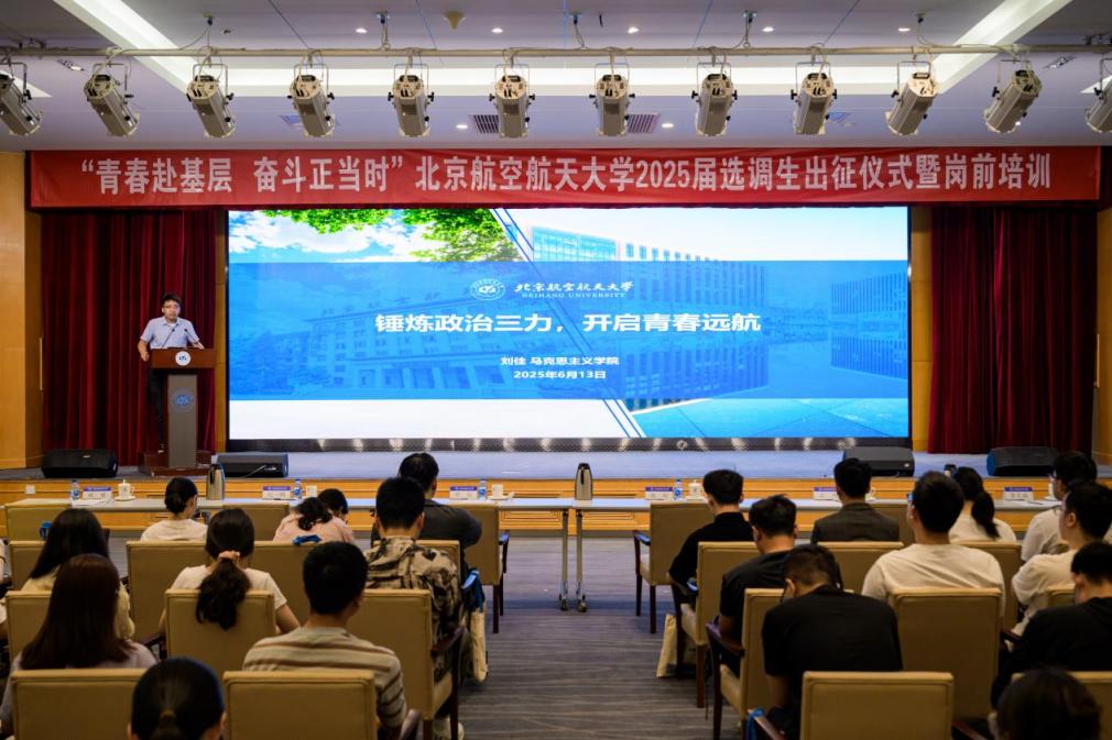 6月13日,“青春赴基层 奋斗正当时”2025届选调生出征仪式暨岗前培训、2026届“未来英才”公考培训班开营仪式在如心会议中心大报告厅举行。上午9时,出征仪式在庄严的国歌声中拉开帷幕。副校长邓怡,北京市委组织部干部队伍建设规划处处长、一级调研员赵超,相关部门负责人以及2025届选调生代表出席了出征仪式。