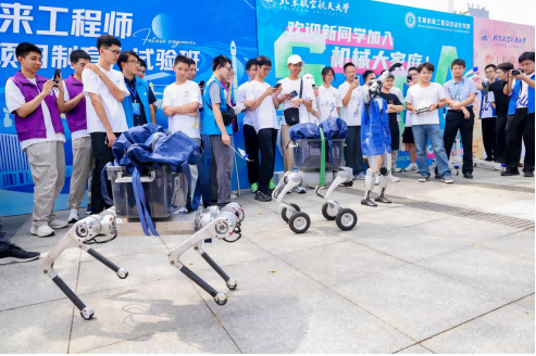 各学院、书院结合自身特色,精心设计了丰富多样的迎新活动,帮助新生更快地熟悉环境、融入集体。来自机械工程及自动化学院具身智能机器人研究院的人形机器人、四足机器人十分瞩目,稳定行走,与新生打招呼,协助搬行李,看似简单的动作背后是模型训练、灵巧驱动等前沿技术的支撑,也是人形机器人项目制培养的核心内容。