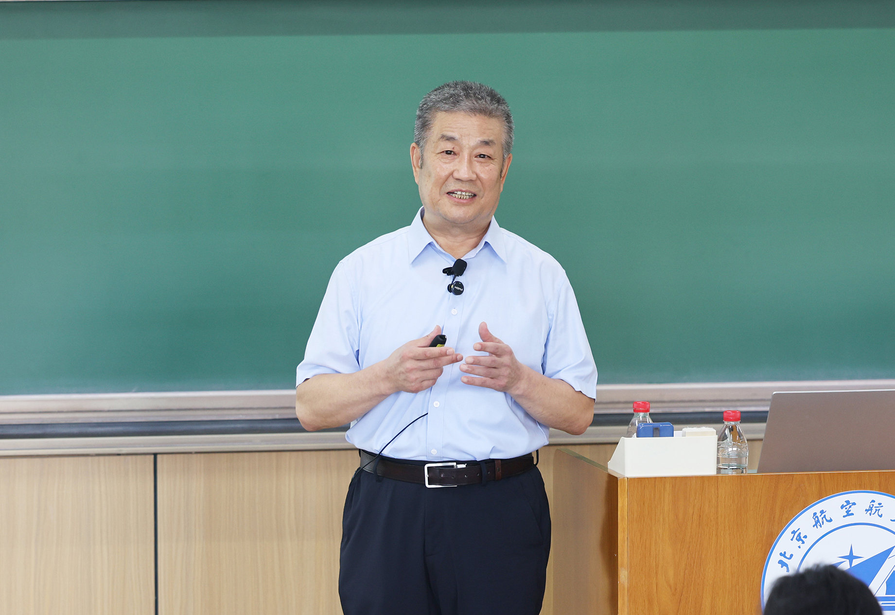 赵长禄向同学们传达了习近平总书记在纪念中国人民抗日战争暨世界反法西斯战争胜利80周年大会上的重要讲话精神,从“学好理论,坚定理想信念”“读懂北航,矢志空天报国”“踔厉奋发,勇担时代使命”三方面进行授课。